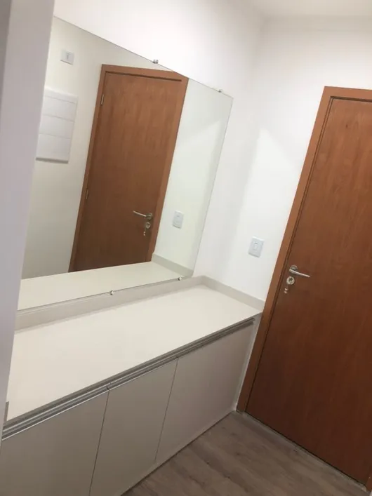 O apartamento no bairro Boqueirão com 59 metros quadrados com 1 quarto e 2 banheiros. Um banheiro foi revertido para despensa, podendo voltar ao quer era pois existe todo o encanamento. Andar alto.