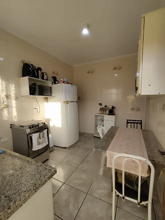 O imóvel no bairro Canto do Forte tem 98 metros quadrados com 2 quartos sendo 1 suite e 3 banheiros, sala, cozinha, área de lazer com churrasqueira, 3 vagas de garagem.